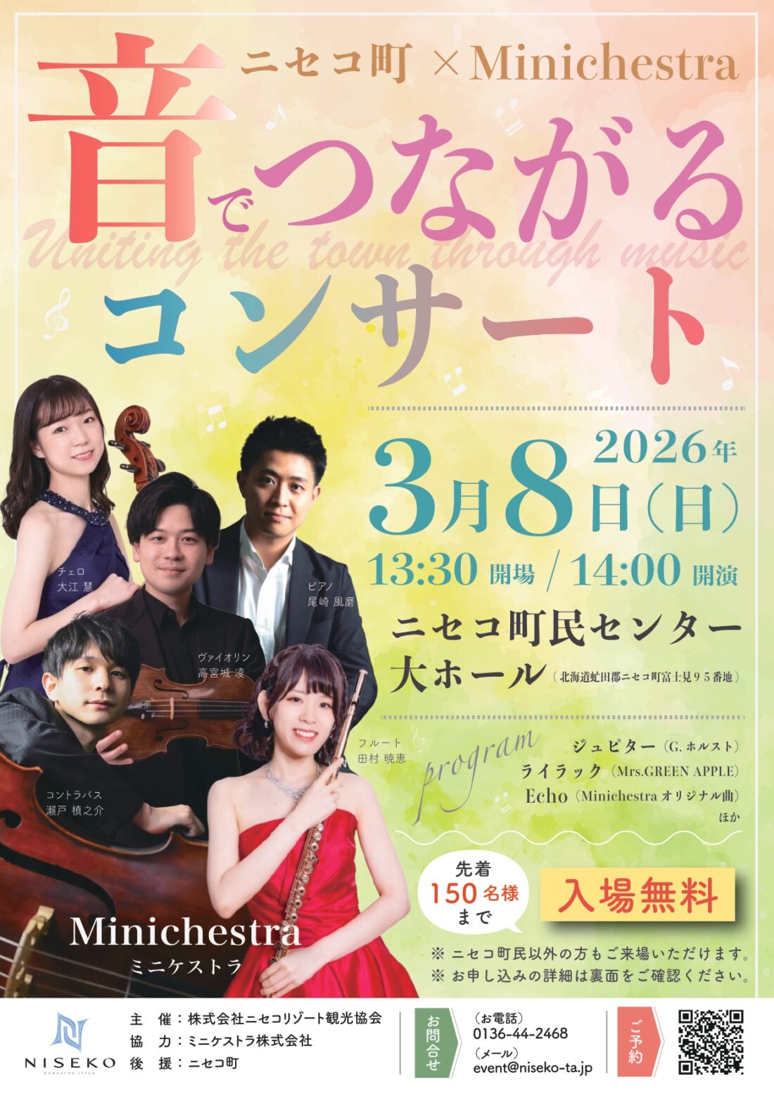 ニセコ町の魅力や、ミニケストラの魅力が存分に味わえるコンサートを実施します!