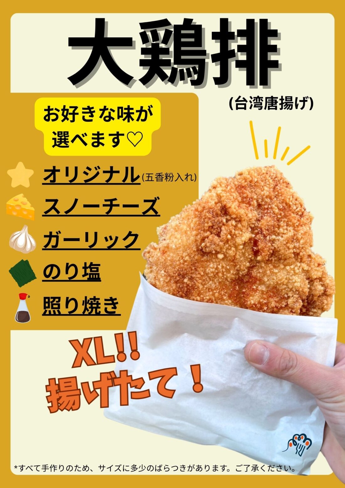 わたしたちのキッチンカー「Paws」では、揚げたての台湾唐揚げやサツマイモボールなどをお楽しみいただけます!