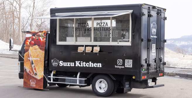 ニセコのキッチンカーです!自家製パンのホットサンドや、温かいスープを用意していきます